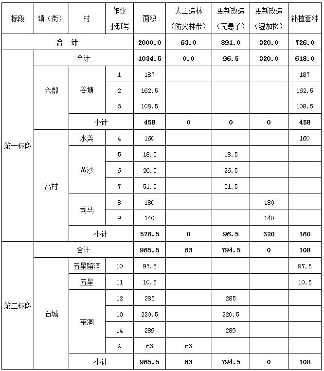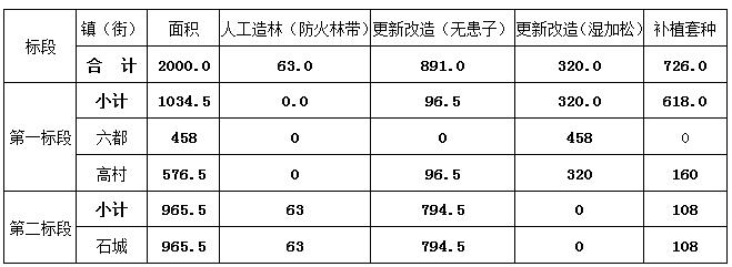 (二)、采購文件第二章 用戶需求書P7中“四、云安區(qū)2020年森林碳匯重點(diǎn)生態(tài)工程項(xiàng)目要求--(四)建設(shè)工程量”